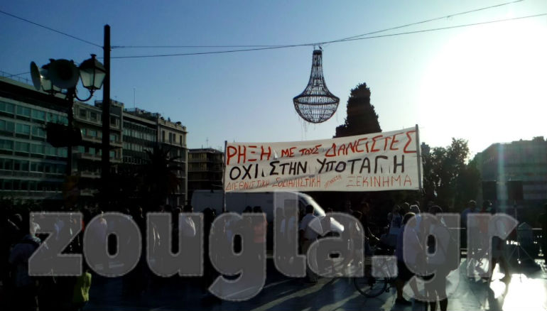Περίπου 2.500 άτομα, κρατώντας πανό και φωνάζοντας συνθήματα υπέρ της ρήξης με τους δανειστές, διαδήλωσαν, στον απόηχο των άκαρπων διαπραγματεύσεων μεταξύ της κυβέρνησης και των εταίρων.