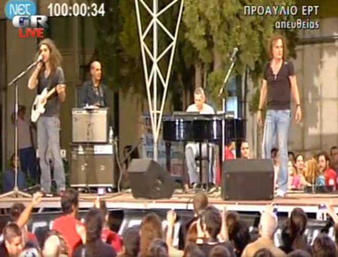 Ολοκληρώθηκε μία ώρα μετά τα μεσάνυχτα η συναυλία υπέρ των εργαζομένων στο Ραδιομέγαρο της ΕΡΤ όπου τραγουδησε ο γνωστός σε όλους Βασίλης Παπακωνσταντίνου.