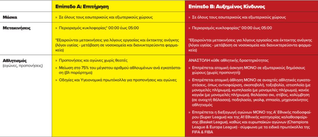 Τα μέτρα που ισχύουν σε κάθε ένα από τα δύο επίπεδα υγειονομικής ασφάλειας