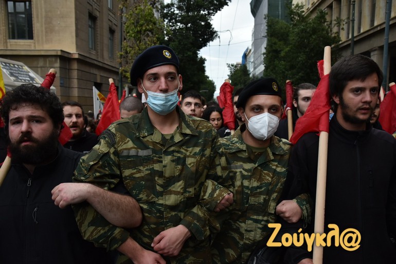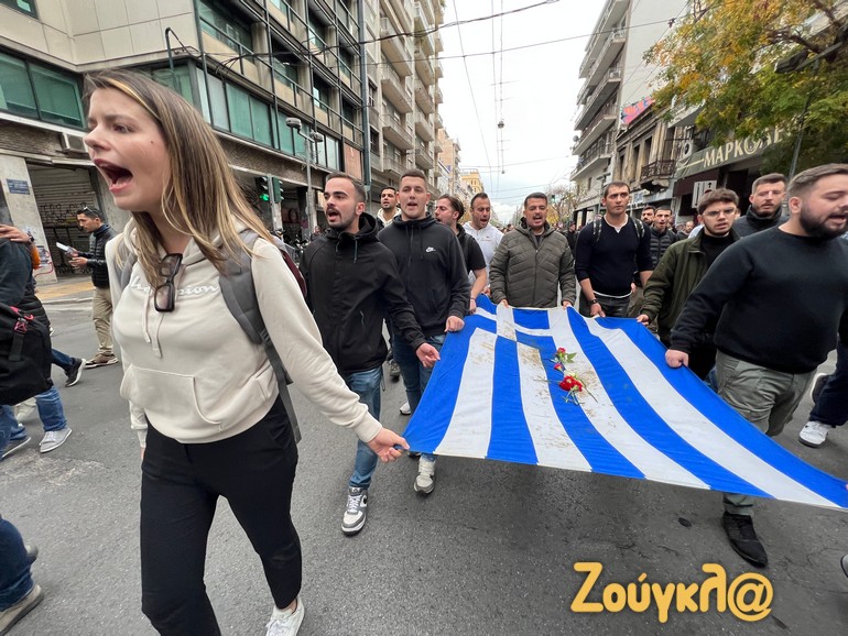 Η μεταφορά της σημαίας -όπως συνηθίζεται κάθε χρόνο- ξεκίνησε από την Ακαδημίας. Οι διαδηλωτές κινήθηκαν με αργούς ρυθμούς προς την αμερικανική πρεσβεία, ενώ δεν υπήρξαν εντάσεις και επεισόδια στην «καρδιά» της πορείας.