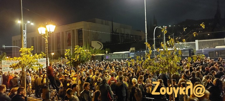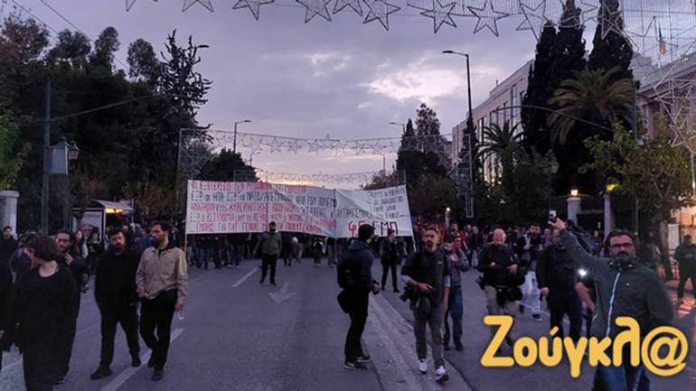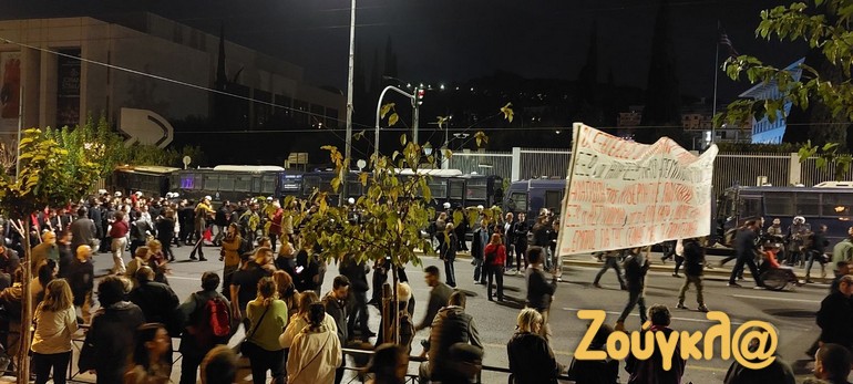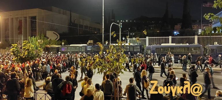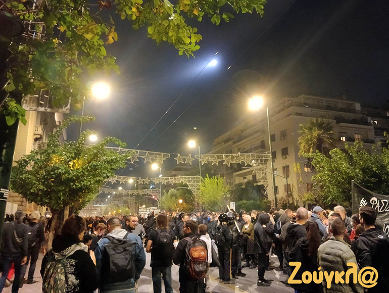 Μερικά λεπτά αργότερα, διαδηλωτές στην Κλαυθμώνος πέταξαν εκ νέου μολότοφ προς τις αστυνομικές διμοιρίες, οι οποίες απάντησαν με δακρυγόνα και βομβίδες κρότου λάμψης. Τα επεισόδια δεν πήραν έκταση, ούτε επηρέασαν την κεφαλή της μεγάλης πορείας, που είχε ξεκινήσει την ίδια ώρα από το κέντρο της πρωτεύουσας.