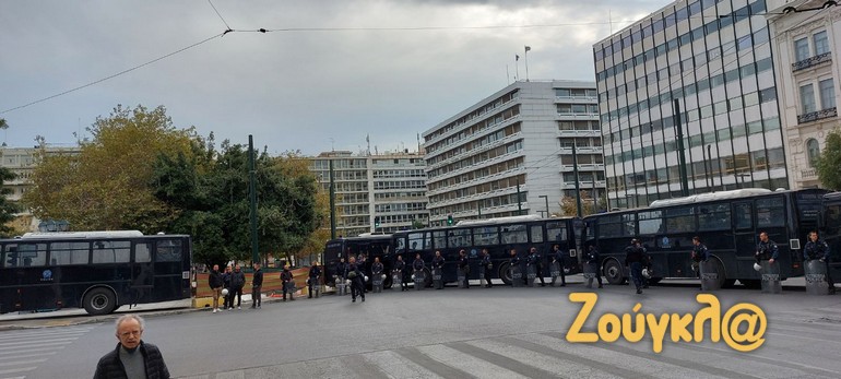 Στο Σύνταγμα υπήρχαν διμοιρίες των ΜΑΤ από το πρωί της Πέμπτης.