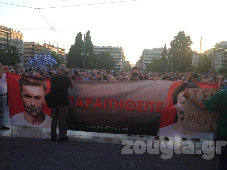 Συγκέντρωση του κινήματος «Παραιτηθείτε» πραγματοποίηθηκε στο Σύνταγμα το απόγευμα της Τρίτης.