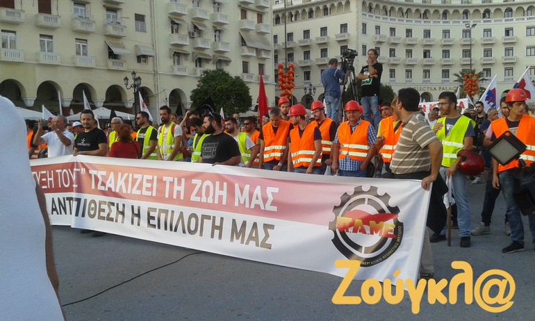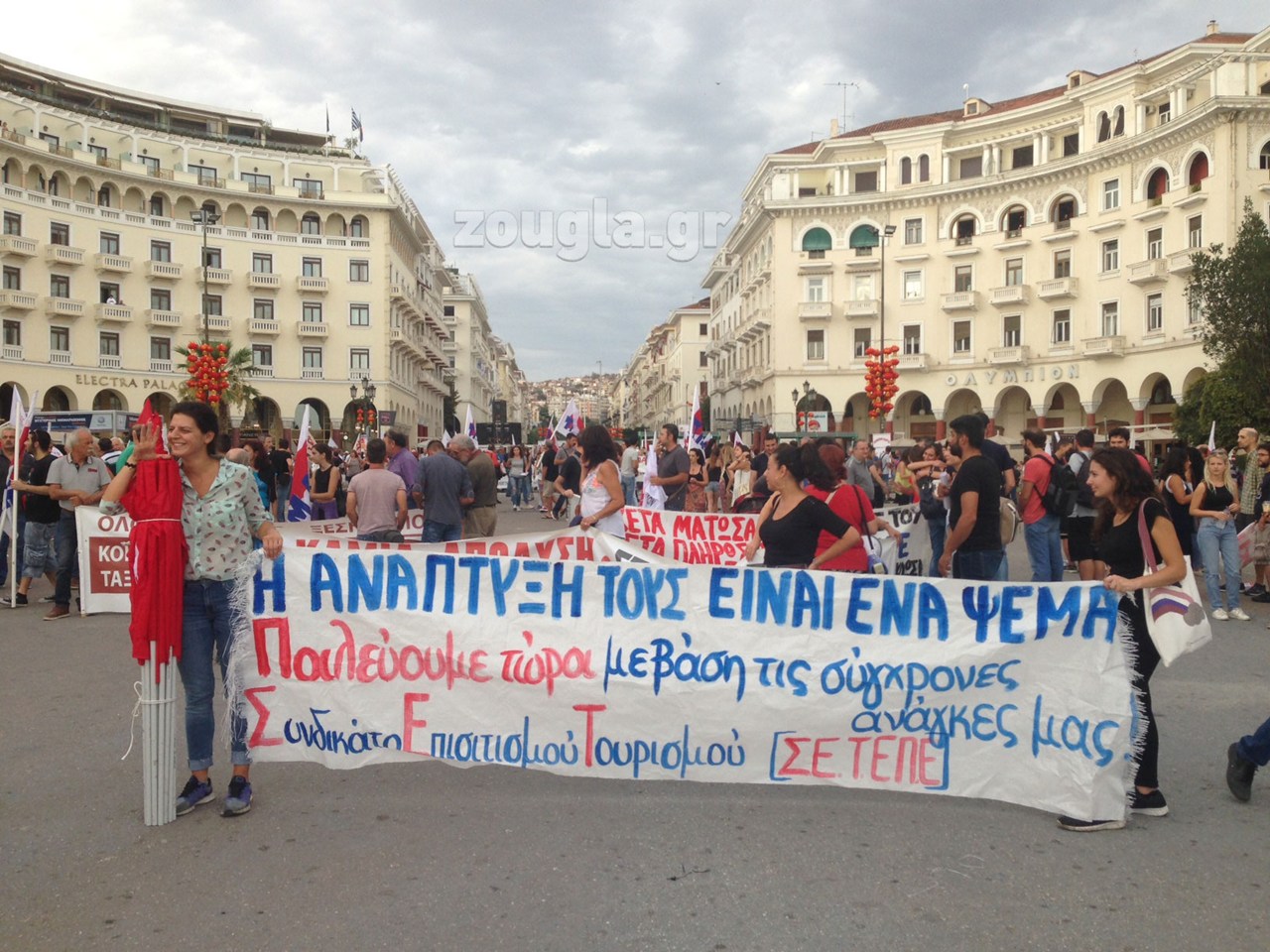 Ο πρόεδρος του Εργατοϋπαλληλικού Κέντρου Θεσσαλονίκης, Παναγιώτης Τσαραμπουλιδης, τόνισε: “Συγκεντρωθήκαμε σε έναν χώρο με ιδιαίτερο συμβολισμό, μπροστά στο άγαλμα του Βενιζέλου, για να απαιτήσουμε να καταργηθούν τα μνημόνια, να επανέλθει ο θεσμός των ελεύθερων συλλογικών διαπραγματεύσεων, τα 751 ευρώ ως κατώτατος μισθός, η προστασία των εργαζομένων, το δίχτυ προστασίας που μας υποσχέθηκαν για τις αδύναμες κοινωνικά ομάδες, όλα αυτά δηλαδή που μας έταζε ο πρωθυπουργός ως “Πρόγραμμα Θεσσαλονίκης και τώρα σφυρίζει αδιάφορα. Αυτά ζητάμε, αυτά είχε συμφωνήσει μαζί μας κι εάν δεν επανέλθουν θα είμαστε στους δρόμους, θα αγωνιζόμαστε προκειμένου να τα επαναφέρουμε. Η αξιοπιστία του καθενός κρίνεται”.