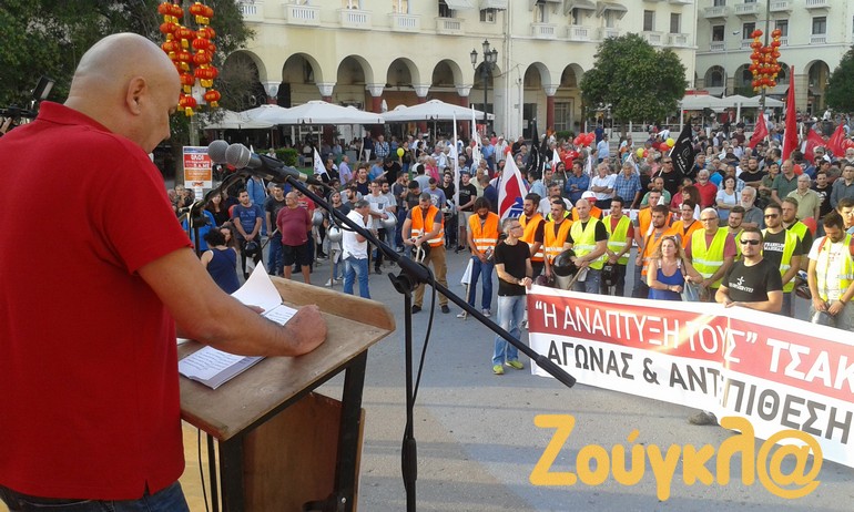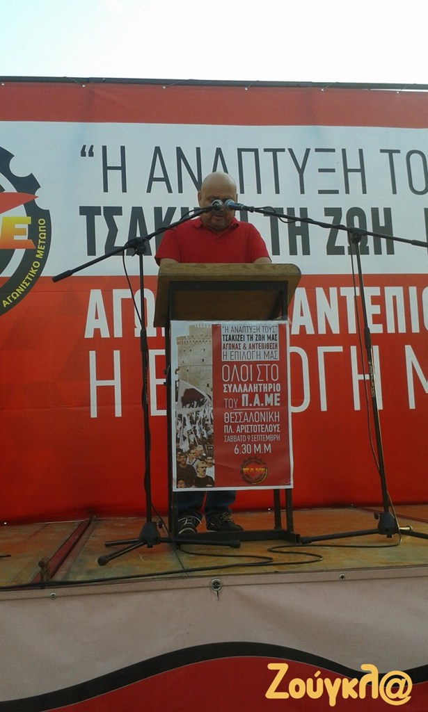 Στα προβλήματα και τις ανάγκες της εργατικής τάξης, «των λαϊκών οικογενειών, των φτωχών αγροτών, των αυτοαπασχολούμενων και της νεολαίας» αναφέρθηκε ο Λεωνίδας Στολτίδης, κεντρικός ομιλητής της συγκέντρωσης του ΠΑΜΕ στην πλατεία Αριστοτέλους και μέλος της εκτελεστικής γραμματείας ΠΑΜΕ. “Είμαστε η τάξη που παράγει τα πάντα, χωρίς εμάς γρανάζι δεν γυρνά” είπε χαρακτηριστικά ο κ.Στολτίδης και πρόσθεσε ότι το ταξικό κίνημα μπορεί να αντισταθεί και να δυναμώσει και άλλο.