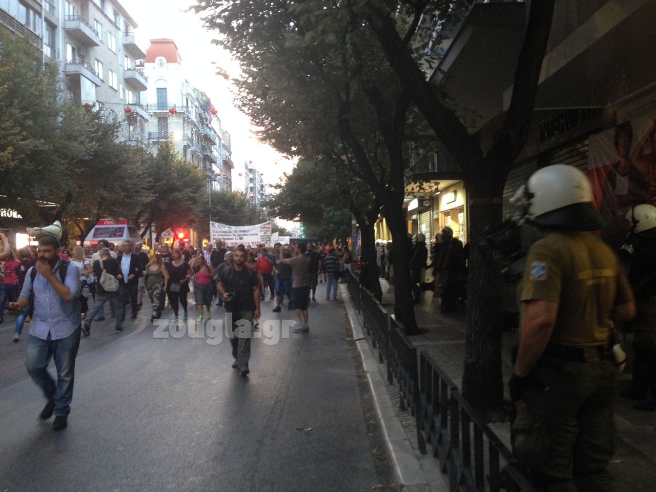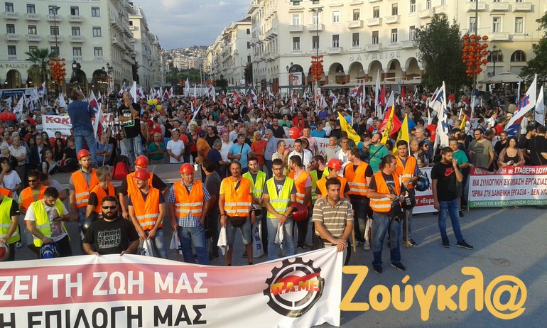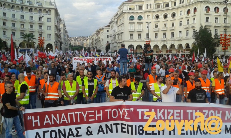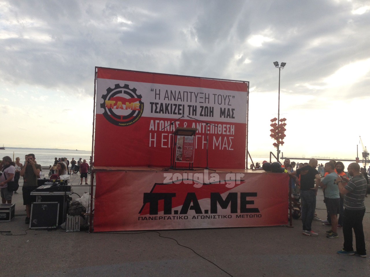 Ξεχωριστή συγκέντρωση, με αφετηρία την Πλατεία Αριστοτέλους, πραγματοποίησαν το ΠΑΜΕ και δυνάμεις που πρόσκεινται σε αυτό, παρουσία του γενικού γραμματέα του ΚΚΕ, Δημήτρη Κουτσούμπα. Στην Αγίας Σοφίας συγκεντρώθηκε το μπλοκ της Λαϊκής Ενότητας (ΛΑΕ), παρουσία και του επικεφαλής της, Παναγιώτη Λαφαζάνη και ξεκίνησε πορεία με τη συμμετοχή και μελών της ΟΚΔΕ και συνδικαλιστών του χώρου.