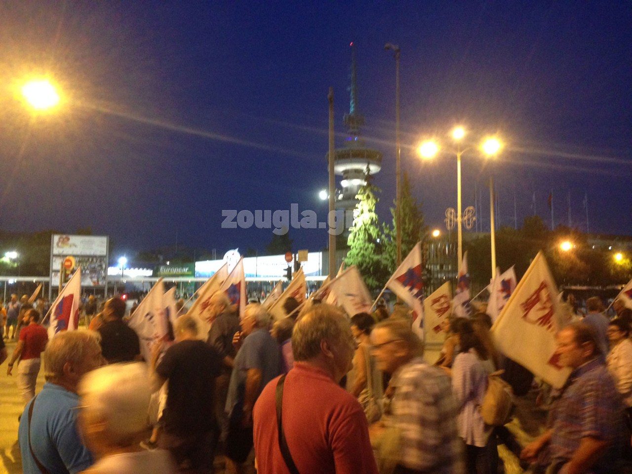 Στην Καμάρα έγινε η συγκέντρωση της Πρωτοβουλίας Συνδικάτων Δημόσιου και Ιδιωτικού Τομέα, της ΑΝΤΑΡΣΥΑ και δυνάμεων της εξωκοινοβουλευτικής αριστεράς, του αντιεξουσιαστικού χώρου, καθώς και μελών των επιτροπών αγώνα κατά του χρυσού.