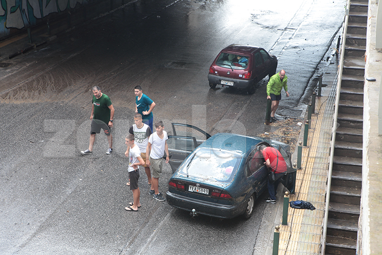 Kοντά στον σταθμό του ΗΣΑΠ στον Περισσό η συσσώρευση υδάτων μετέτρεψε σε ποτάμια τους δρόμους με τα αυτοκίνητα να επιπλέουν.