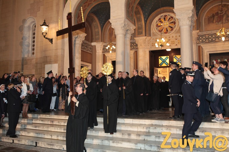 Ολοκληρώθηκε η Ακολουθία του Επιταφίου της Μεγάλης Παρασκευής, στον Καθεδρικό Ι. Ναό Αθηνών, προεξάρχοντος του Μακαριωτάτου Αρχιεπισκόπου Αθηνών και πάσης Ελλάδος, κ.κ. Ιερωνύμου. Αμέσως μετά, έλαβε χώρα η περιφορά του Επιταφίου και η δέησις στο μνημείο του Αγνώστου Στρατιώτη.