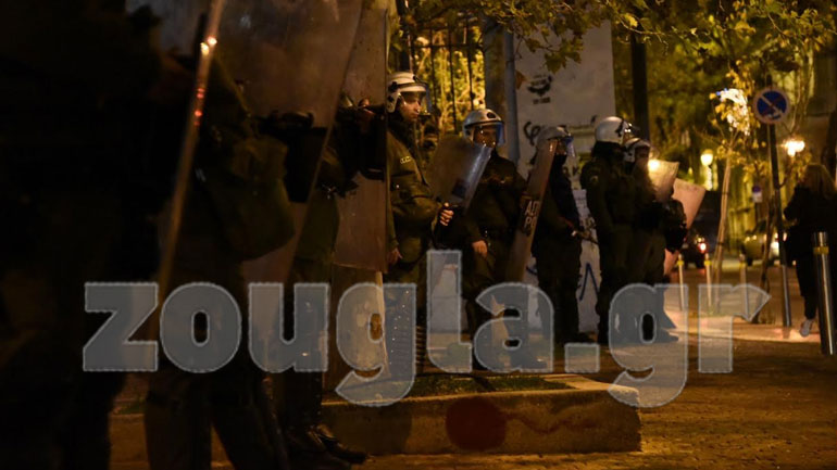Όσοι φοιτητές βρίσκονται στο προαύλιο χώρο της Νομικής φωνάζουν συνθήματα κατά των αστυνομικών δυνάμεων και για το άσυλο. Ομάδες φοιτητών κατευθύνθηκαν προς τα Προπύλαια και ζητούν συνάντηση με την Πρυτανεία.