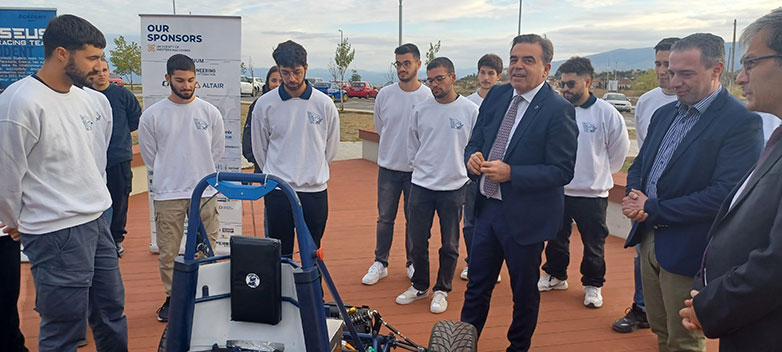 Νωρίτερα ο κ. Σχοινάς συνοδευόμενος από τον Πρύτανη περιηγήθηκε στα open labs που είχαν στηθεί στο προαύλιο χώρο του ιδρύματος, όπου οι επιστημονικές φοιτητικές ομάδες από τα τμήματα της Πολυτεχνικής Σχολής καθ’ όλη την διάρκεια της ημέρας παρουσίασαν σε σχολεία τα επιτεύγματα τους. Στο χώρο της Πρυτανείας οι ερευνητικές ομάδες των Τεχνοβλαστών που τα τελευταία χρόνια έχουν δημιουργηθεί στο ΠΔΜ παρουσίασαν το ερευνητικό τους έργο που χρηματοδοτείται από ευρωπαϊκά προγράμματα.