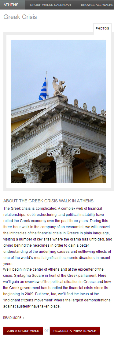 Αυτή την ωραία μπίζνα συνέλαβε ως ιδέα και ένα αμερικανικό ταξιδιωτικό γραφείο, ένα τουρ δηλαδή στο κέντρο της Αθήνας που μάλιστα το ονόμασε «Greek Crisis walk»!