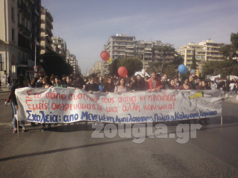 Δυναμικές κινητοποιήσεις πραγματοποίησαν οι μαθητές της Θεσσαλονίκης, διαμαρτυρόμενοι για τις τεράστιες ελλείψεις που αντιμετωπίζουν στα σχολεία τους και παραμένει άλυτες. Σχολεία από τους Δήμους του Πολεοδομικού Συγκροτήματος Θεσσαλονίκης, συγκεντρώθηκαν στο Άγαλμα Βενιζέλου και στη συνέχεια έκαναν πορεία διαμαρτυρίας στους κεντρικούς δρόμους της πόλης και κατέληξαν στο Υπουργείο Μακεδονίας – Θράκης.