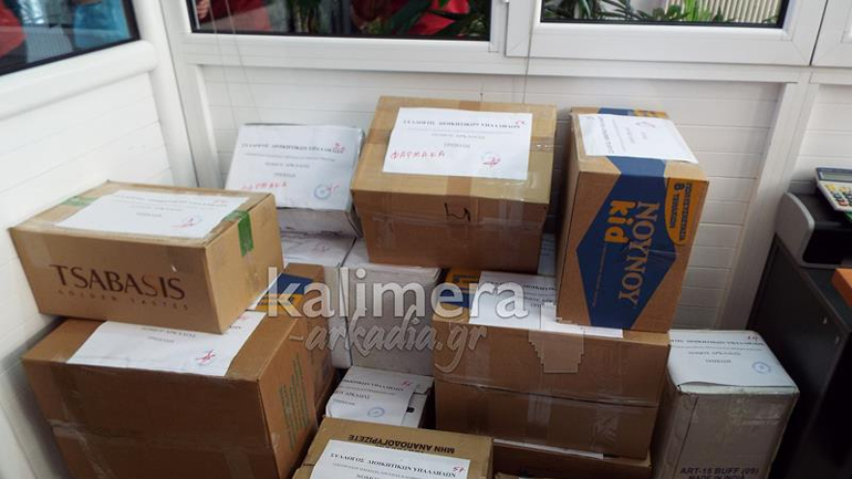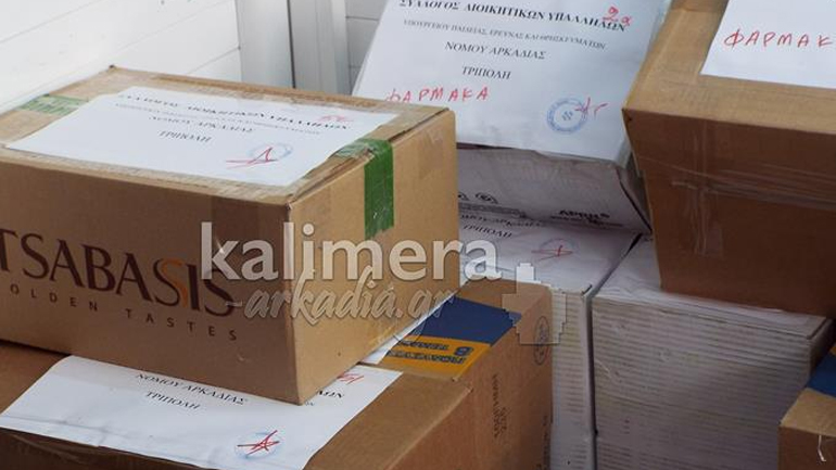 Περισσότερα από 60 δέματα με φαρμακευτικό υλικό και είδη καθαρισμού συγκεντρώθηκαν με πρωτοβουλία του συλλόγου διοικητικών υπαλλήλων Αρκαδίας του Υπουργείου Παιδείας και με τη βοήθεια του Δήμου Τρίπολης θα σταλούν στον Δήμο Λέσβου για τις ανάγκες των προσφύγων που φτάνουν συνεχώς στο νησί.
