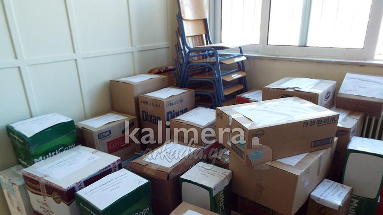 Το υλικό συγκεντρώθηκε από μαθητές σχολείων της Αρκαδίας και περιλαμβάνει είδη πρώτης ανάγκης που χρειάζονται στο νησί για να βοηθήσουν τους πρόσφυγες που καταφθάνουν.