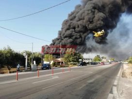 Η φωτιά καίει στο εργοστάσιο ΠΑΒΙΠΛΑΣΤ στο Γομοστό Δυτικής Αχαΐας, μία εταιρεία που δραστηριοποιείται στον χώρο της πλαστικής συσκευασίας και των αγροτικών και βιομηχανικών προϊόντων.