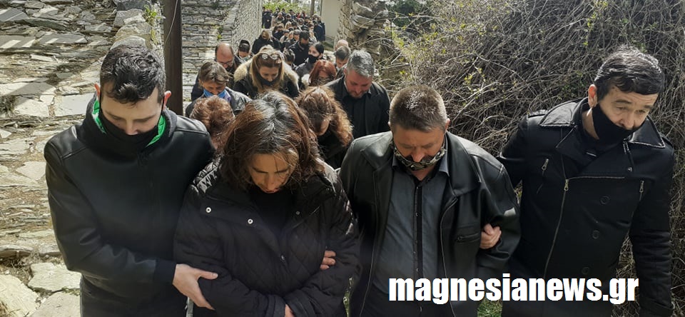 Βουβός θρήνος στην εξόδιο ακολουθία των αδικοχαμένων αδελφών Τσάπα στη Μακρινίτσα, όπου συγγενείς και φίλοι τούς αποχαιρέτησαν από τον Ιερό Ναό Κοιμήσεως της Θεοτόκου.