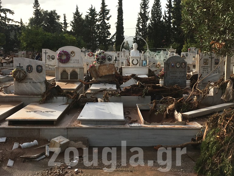 Μεγάλες καταστροφές στο νεκροταφείο της Μάνδρας