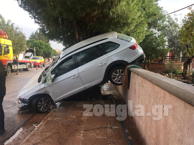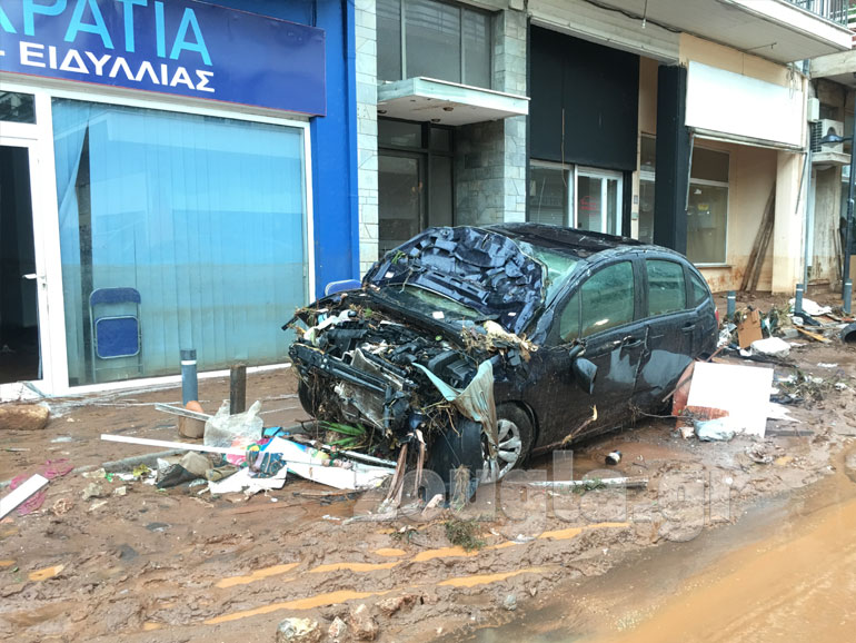 Ποιος θα περίμενε να αντικρίσει τέτοιες εικόνες. Τα ορμητικά νερά παρέσυραν τα αυτοκίνητα και τα σφήνωσαν πάνω στις πόρτες των κατοικιών. Από το πρωί γερανοί επιχειρούν στη Μάνδρα για να σηκώσουν τα οχήματα από τα σπίτια και τις αυλές.
