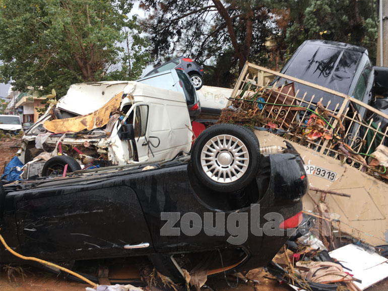 Οι ρεπόρτερ του zougla.gr ακολούθησαν την ανάποδη πορεία των χειμάρρων από τη Μάνδρα προς το ύψωμα που οδηγεί στην Παλαιά Εθνική Οδό Ελευσίνας – Θηβών. Ο φακός τους αποτύπωσε την οργή της φύσης που ξέσπασε σε σπίτια, αγροικίες, μαντριά και βεβαίως σε όλα τα εκτεθειμένα οχήματα.