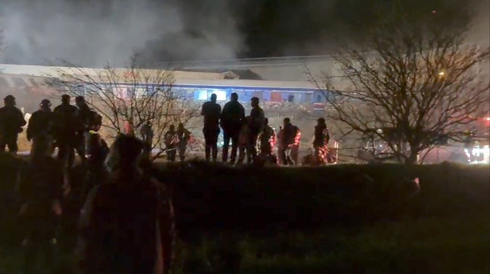 Η επιχείρηση συνεχίζεται στα συντρίμμια της επιβατικής αμαξοστοιχίας που συγκρούστηκε με εμπορευματική στην περιοχή Ευαγγελισμός, κοντά στα Τέμπη.