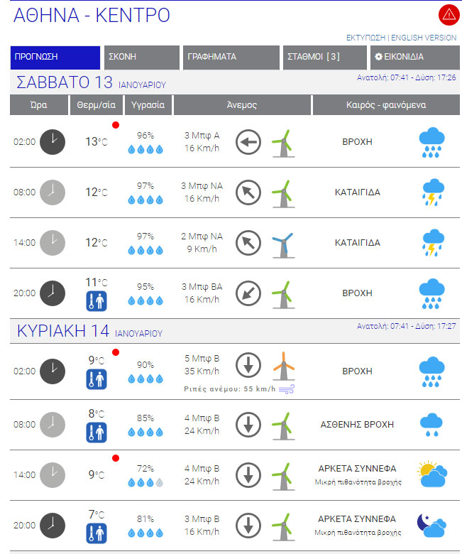Πηγές: Εθνικό Αστεροσκοπείο Αθηνών, Metoclub, Forecastweather,Meteo