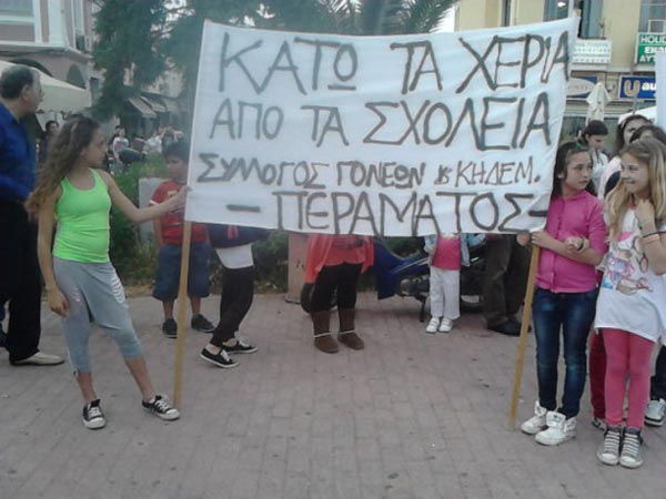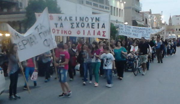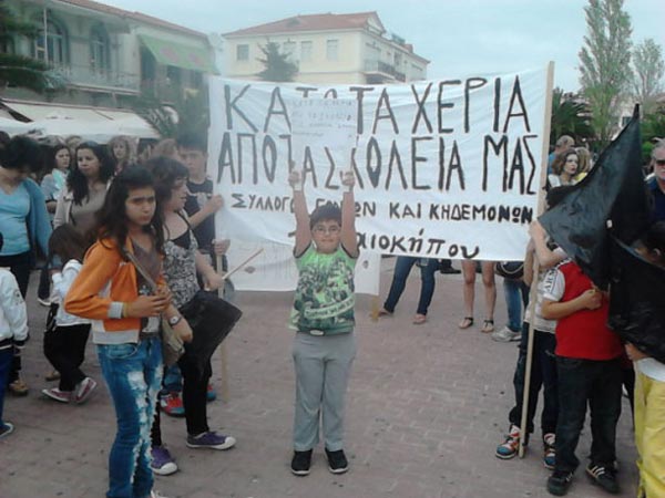 «Θέλουμε σχολεία… όχι φυλακές. Η πολιτική της συγκυβέρνησης ΝΔ, ΠΑΣΟΚ και ΔΗΜΑΡ οδηγεί την ελληνική ύπαιθρο στην ερήμωση και στην εξαθλίωση. Τα παιδιά μας έχουν δικαίωμα στη μόρφωση» τόνισαν.