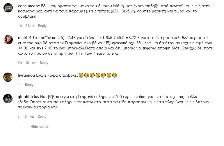 Διαβάστε τα σχόλια των αναγνωστών σε ανάρτηση του Μάκη Τριανταφυλλόπουλου για τις τιμές, στο Instagram: