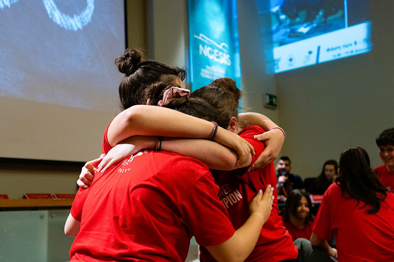 Οι νικητές κερδίζουν απινιδωτές για το σχολείο τους, μπροστά σε εκατοντάδες γονείς και συνοδούς εκπαιδευτικούς που ζητωκραυγάζουν (https://youtu.be/z42uPro1ZbE?si=hzPr5dsqyQSqUgDv).