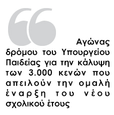 Κορυφώνονται οι διεργασίες στο Υπουργείο Παιδείας προκειμένου να καλυφθούν -σε όσον το δυνατόν μεγαλύτερο βαθμό- τα 3.000 κενά, τα οποία απειλούν να μπλοκάρουν την ομαλή έναρξη του νέου σχολικού έτους.