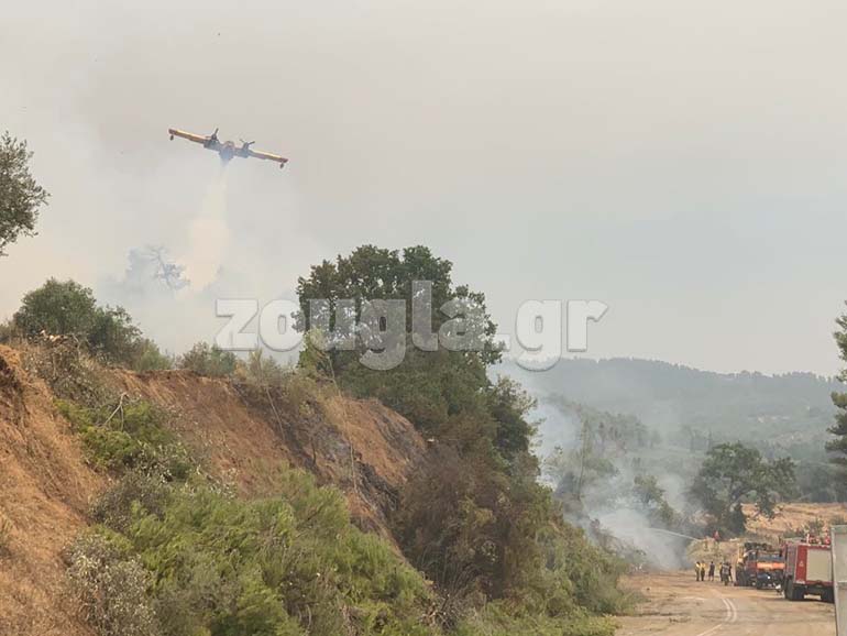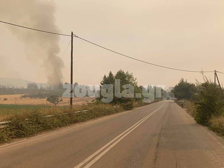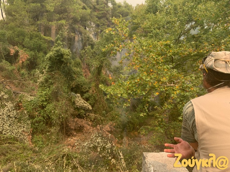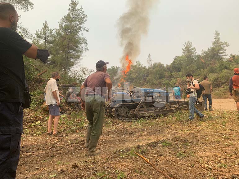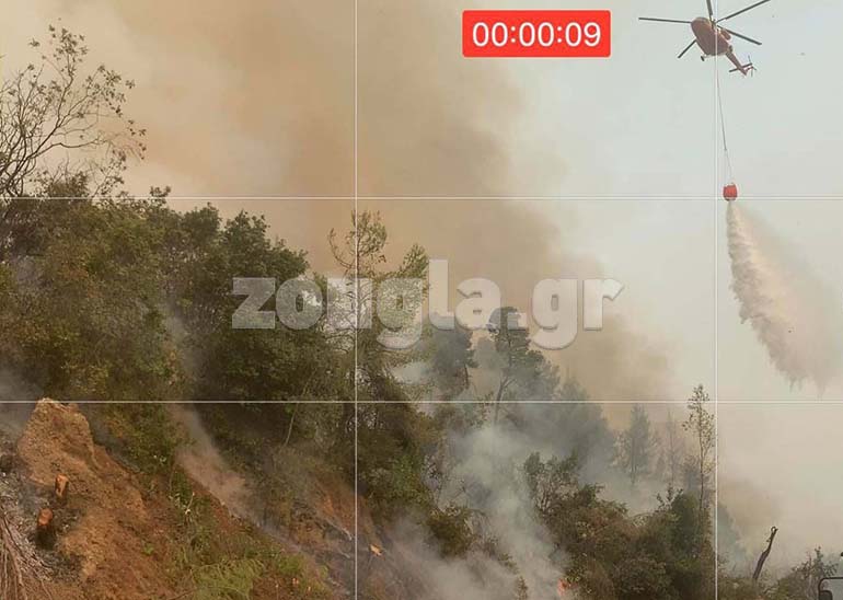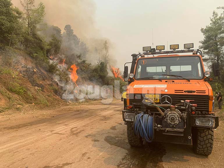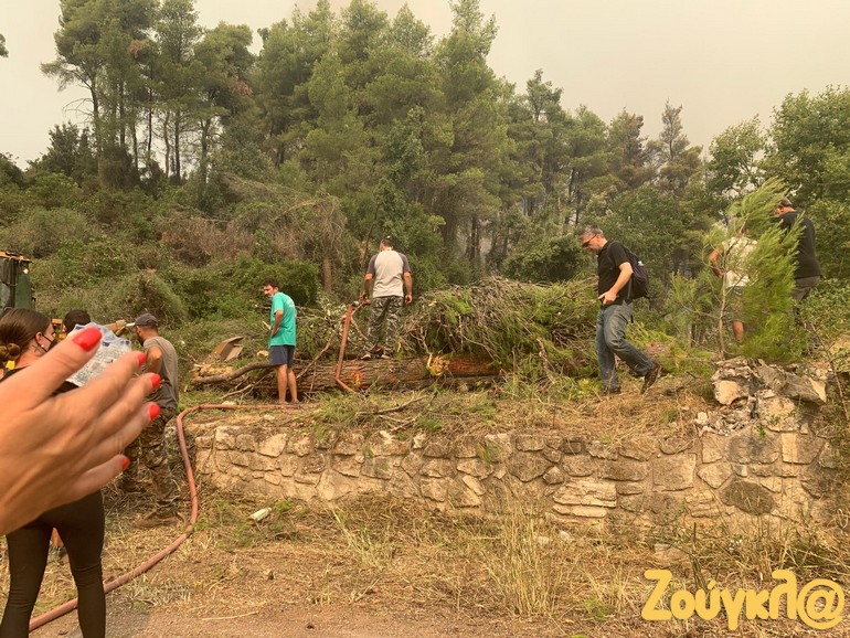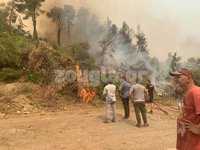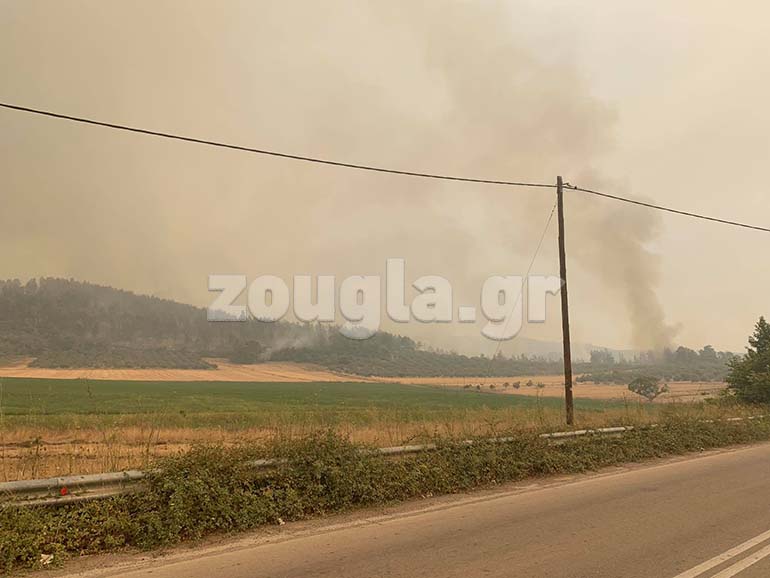 Την ώρα που το πύρινο μέτωπο πλησιάζει προς το χωριό Κεχριές, που εκκενώθηκε λίγο νωρίτερα, η πυροσβεστική και τα στελέχη της πυροσβεστικής υπηρεσίας δίνουν μάχη με τον χρόνο για να δημιουργήσουν αντιπυρικές ζώνες μέσα στο δάσος, στις παρυφές του οικισμού, ώστε να σωθεί το χωριό.
