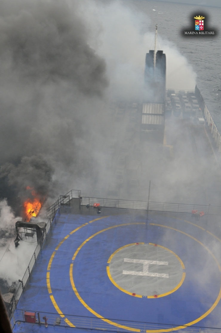 Οι ώρες περνούσαν δραματικά και όσοι απέμειναν στο κατάστρωμα, περίμεναν καρτερικά εν μέσω καπνών (από μικρές εστίες πλέον φωτιάς) και ψύχους, βοήθεια από τα ελικόπτερα και τα παραπλέοντα σκάφη, που όμως δεν μπορούσαν να τους προσεγγίσουν εύκολα λόγω των ισχυρών ανέμων. Στην επιχείρηση διάσωσης συμμετέχουν 10 παραπλέοντα πλοία, ρυμουλκό (Albine B), σκάφος της ιταλικής ακτοφυλακής, ειδικό σκάφος ελικοφόρο, τρία ιταλικά ελικόπτερα Super Puma και ένα ελληνικό.