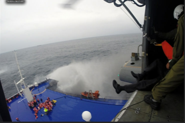 Η απόφαση ελήφθη μετά τις αποτυχημένες προσπάθειες ρυμούλκησης του πλοίου και την προσωρινή βελτίωση των καιρικών συνθηκών που επέτρεψε την προσέγγιση του. Ωστόσο, περίπου 40 λεπτά αργότερα, σταμάτησε η μετεπιβίβαση στο ιταλικό πολεμικό σκάφος και η επιχείρηση απομάκρυνσης των επιβατών συνεχίζεται με ελικόπτερα.