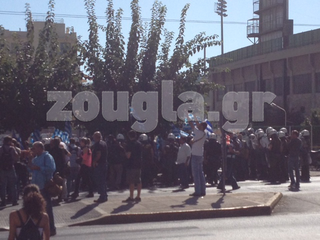 Έξω από τα γραφεία της Γενικής Αστυνομικής Διεύθυνσης Αθηνών έχουν συγκεντρωθεί δεκάδες μέλη-υποστηρικτές του κόμματος. Περίπου στις 15.00 τέσσερις διμοιρίες των ΜΑΤ παρατάχθηκαν σε κομβικά σημεία πέριξ του κτηρίου της ΓΑΔΑ. Λίγο αργότερα, επικράτησε ένταση με αντεγκλήσεις ανάμεσα στους συγκεντρωθέντες και τις δυνάμεις των ΜΑΤ.