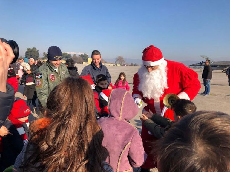 Με ένα αεροσκάφος της Πολεμικής Αεροπορίας προσγειώθηκε και εφέτος ο… Άγιος Βασίλης στη Λάρισα, προσφέροντας δώρα και ευχές στα παιδιά που βρέθηκαν στην πίστα του αεροδρομίου της 110 Πτέρυγας Μάχης, για την καθιερωμένη εορταστική εκδήλωση που διοργανώνει η Πολεμική Αεροπορία, σε συνεργασία με την Αντιδημαρχία Κοινωνικής Πολιτικής του Δήμου Λαρισαίων.