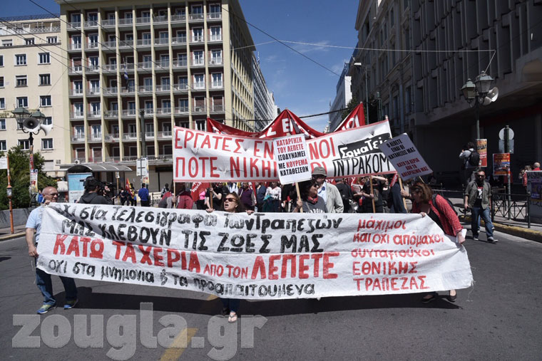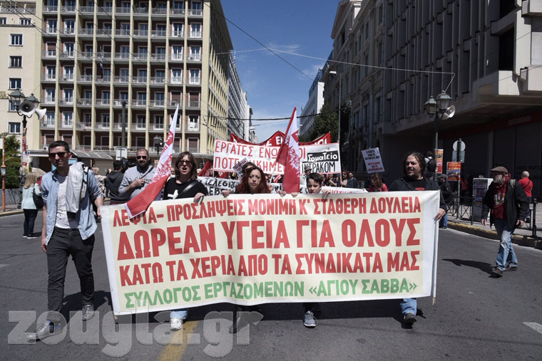 Στο μεταξύ στους δρόμους έχουν βγει εκπρόσωποι σωματείων εργαζομένων, πραγματοποιώντας πορεία από κεντρικούς δρόμους της Αθήνας με κατεύθυνση προς την πλ. Συντάγματος.