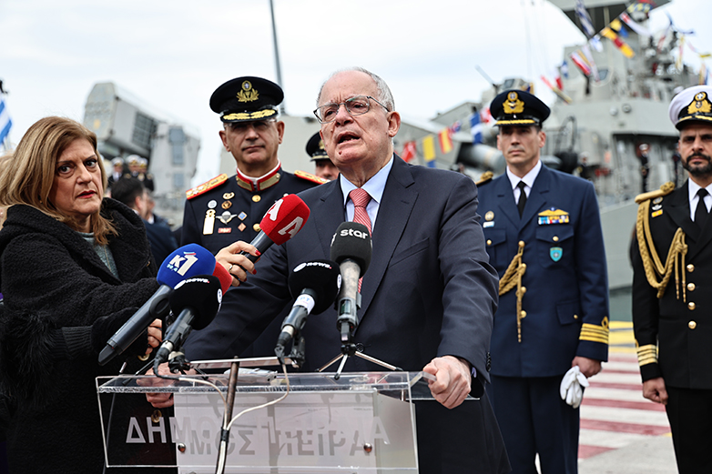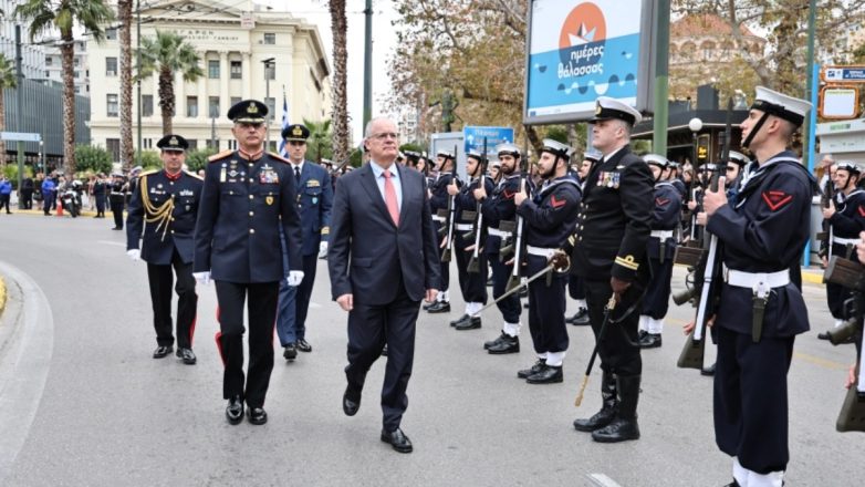 Ο Πρόεδρος της Δημοκρατίας Κωνσταντίνος Τασούλας κατά την εκφώνηση του πανηγυρικού της ημέρας