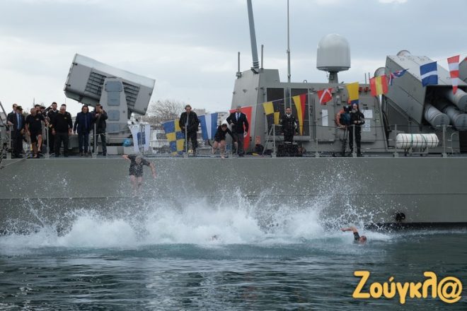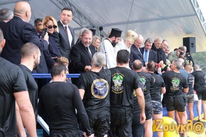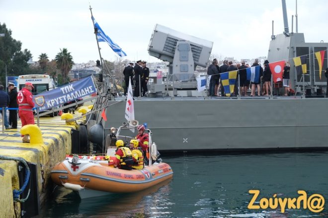 Ακολούθησε ο Καθαγιασμός των Υδάτων και η Κατάδυση του Τιμίου Σταυρού στο λιμάνι του Πειραιά.