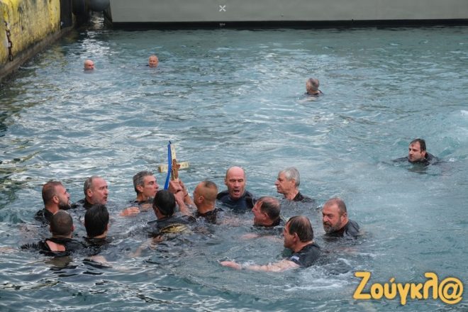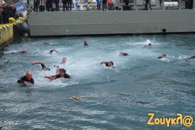 Δεκάδες πιστοί και φέτος αψήφησαν το κρύο και βούτηξαν για να πιάσουν τον Σταυρό τη στιγμή που ο ιερέας τον έριξε στα νερά, ψάλλοντας το «εν Ιορδάνη βαπτιζομένου σου Κύριε, η της Τριάδος εφανερώθη προσκύνησις,