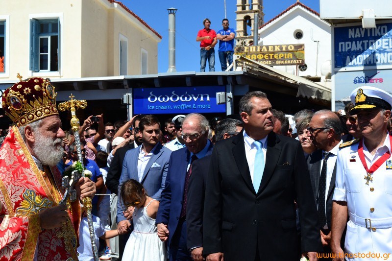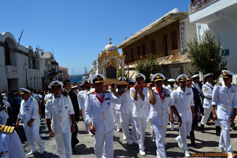 Για τον εορτασμό της Κοιμήσεως της Θεοτόκου στην Τήνο κατέπλευσαν στο νησί η φρεγάτα “ΝΑΒΑΡΙΝΟΝ” η πυραυλάκατος “ΜΠΛΕΣΣΑΣ” και το αρματαγωγό “ΧΙΟΣ” ενώ πάνω από τον χώρο της εκδήλωσης πέταξε τριάδα μαχητικών αεροσκαφών Mirage-2000.