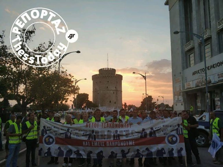 Πορεία πραγματοποιούν αυτή την ώρα ένστολοι αστυνομικοί, λιμενικοί και πυροσβέστες στο κέντρο της Θεσσαλονίκης για τα προβλήματα που αντιμετωπίζουν, με αφορμή τα εγκαίνια της 83ης ΔΕΘ από τον πρωθυπουργό.