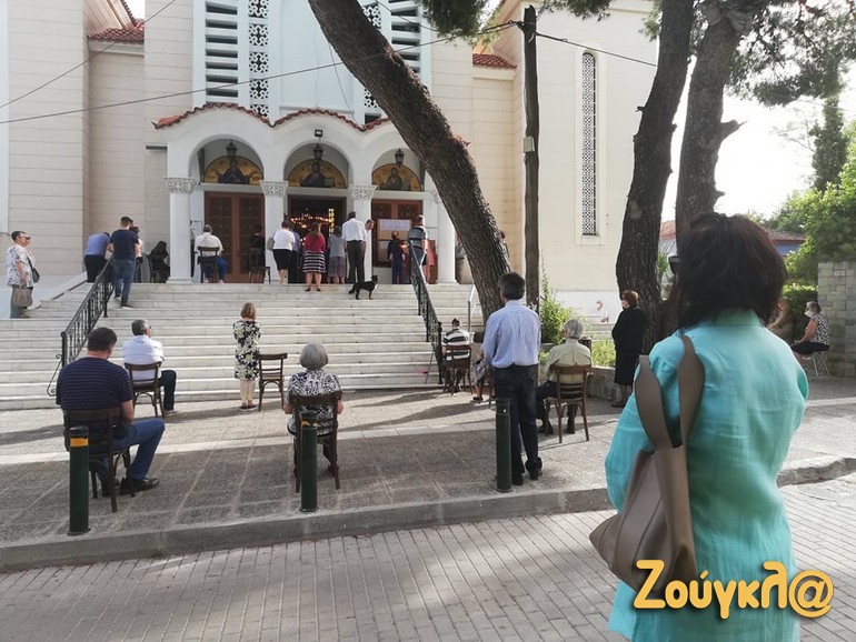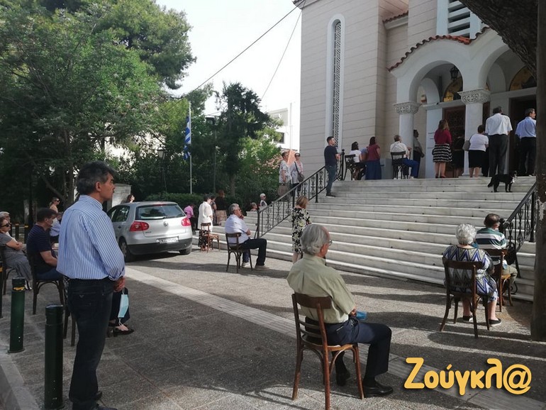 Το zougla.gr βρέθηκε στον Ιερό Ναό Απ. Παύλου και Πέτρου στην Πεύκη το πρωί της Κυριακής. Όπως φαίνεται και στις φωτογραφίες, οι πιστοί κρατούν αποστάσεις, κάποιοι φορούν μάσκα, ενώ αρκετοί στέκονται στον εξωτερικό χώρο για να ακούσουν την Θεία Λειτουργία. Στην εκκλησία υπάρχει αντισηπτικό αλλά και τραπεζοκαθίσματα στον προαύλιο χώρο.