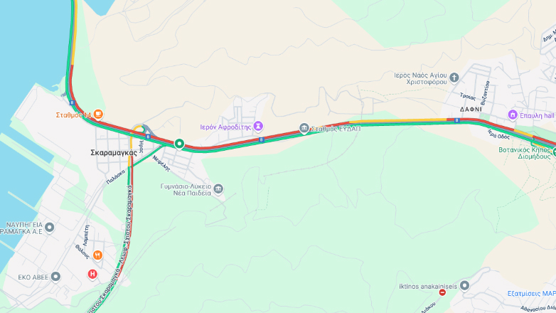 Η κυκλοφορία στους μεγάλους οδικούς άξονες της Αθήνας φαίνεται προς το παρόν ομαλή. Η Λεωφόρος Αθηνών-Κορίνθου όμως έχει έντονη συμφόρηση και στα δύο ρεύματα. Σύμφωνα με την Τροχαία, ιδιαίτερα στο ύψος του Σκαραμαγκά η κίνηση είναι αυξημένη, με τις καθυστερήσεις να επηρεάζουν την ομαλή ροή των οχημάτων. Αυξημένη είναι η κίνηση και στα διόδια της Ελευσίνας.