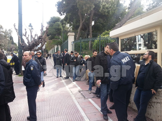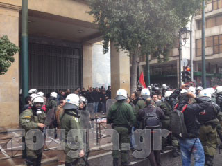 Η αστυνομία είχε αποκλείσει τον δρόμο με κλούβες στο ύψος της Παλιάς Βουλής. Οι εργαζόμενοι που προσπάθησαν να κινηθούν προς το Υπουργείο Οικονομικών, επιχείρησαν να βρουν δίοδο από τα πλαϊνά του δρόμου και να περάσουν προς το υπουργείο. Δημιουργήθηκε ένταση με τους αστυνομικούς, ωστόσο περίπου 20 άτομα κατάφεραν να περάσουν. Η αστυνομία προέβη σε περιορισμένη χρήση χημικών.
