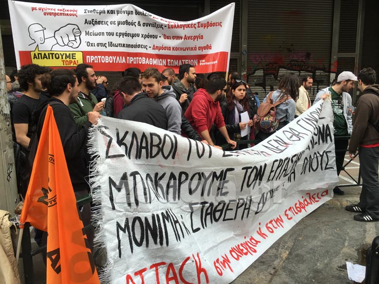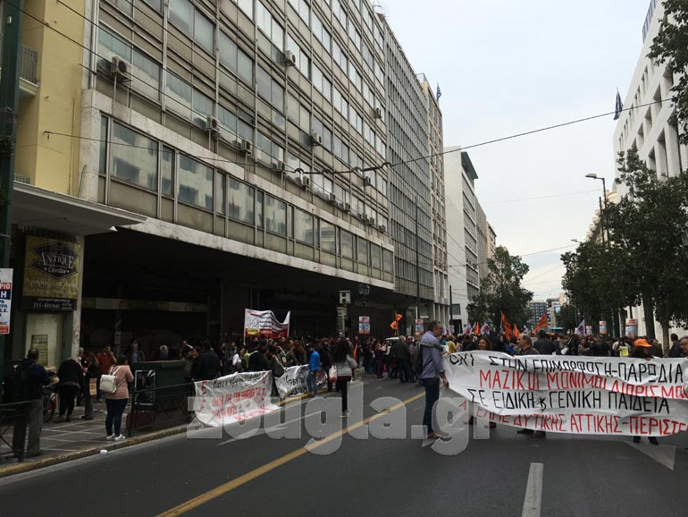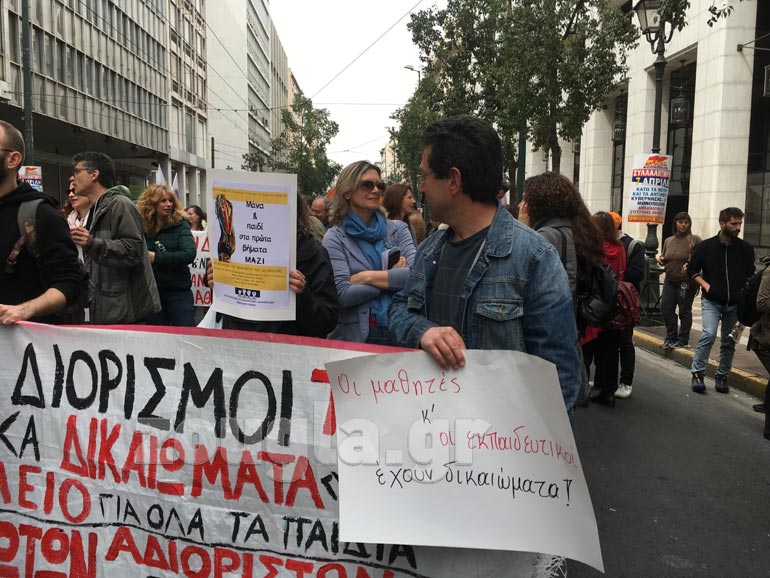 Με σύνθημα «Όχι στην Παιδεία των περικοπών» οι εκπαιδευτικοί συγκεντρώθηκαν σήμερα στο κέντρο της Αθήνας, απαιτώντας μόνιμους διορισμούς πλήρη εργασιακά και ασφαλιστικά δικαιώματα στους αναπληρωτές, καθώς επίσης και δημόσια, δωρεάν εκπαίδευση για όλα τα παιδιά.