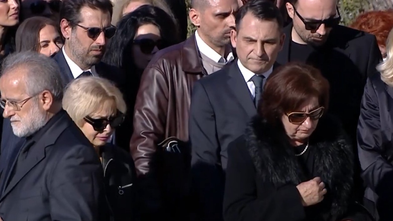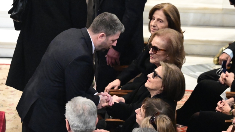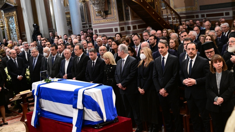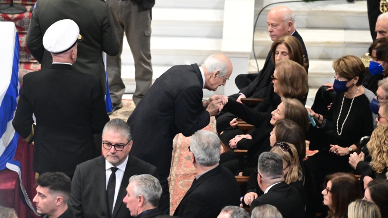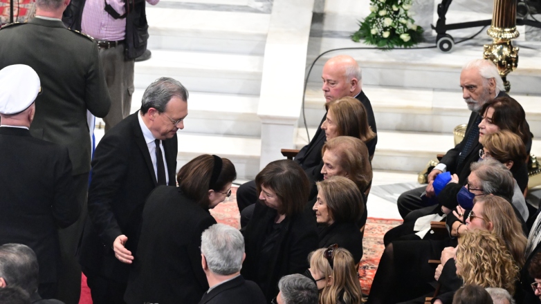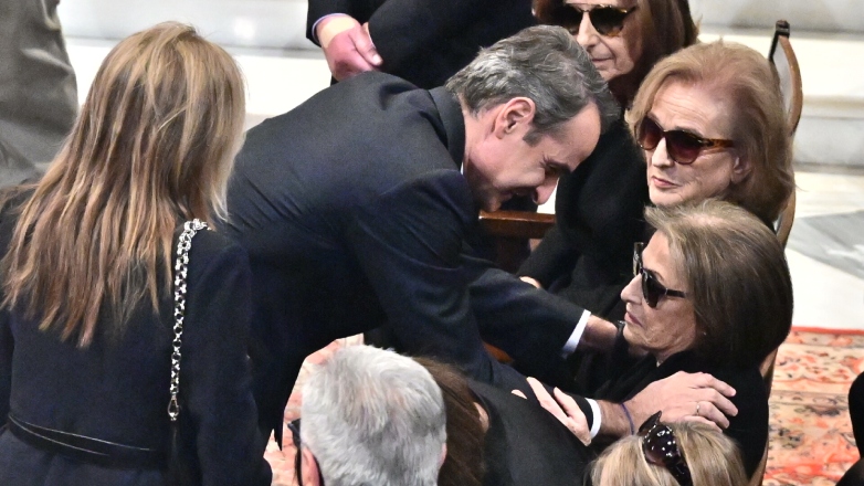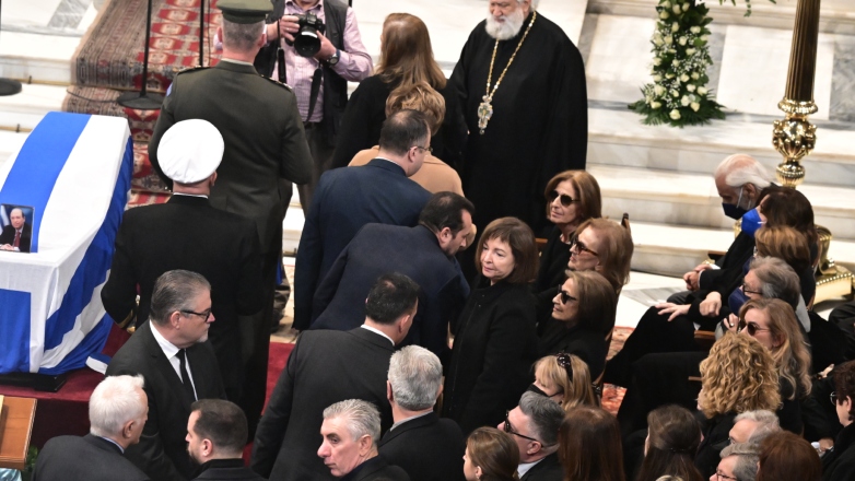 11.50 Πλάι στο φέρετρο του πρώην πρωθυπουργού εντός του ναού στάθηκε η οικογένειά του, η σύζυγός του Δάφνη, οι δύο κόρες του και η εγγονή του.