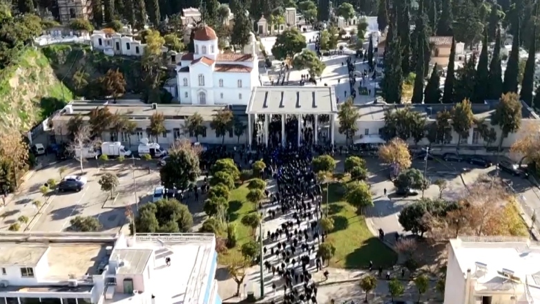 14.30 Το φέρετρο με την ελληνική σημαία μπαίνει στο Α’ Νεκροταφείο Αθηνών
