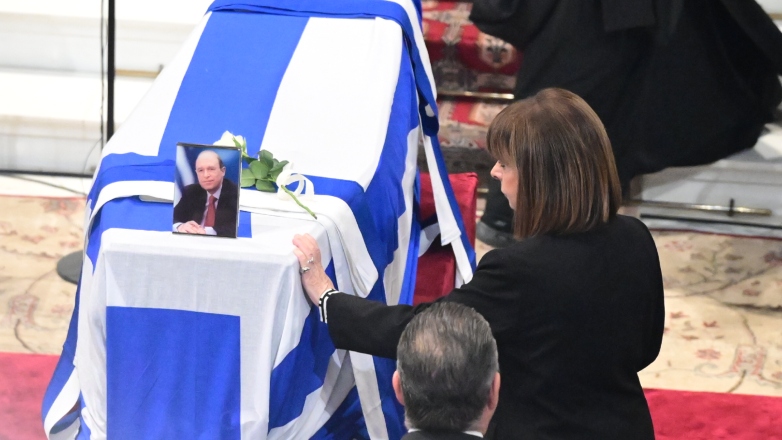 12.40 Στον επικήδειό της η πρόεδρος της Δημοκρατίας Κατερίνα Σακελλαροπούλου είπε ότι ο Κώστας Σημίτης πήρε αποφάσεις, που καθόρισαν το μέλλον και τις ζωές όλων μας. Ολοκληρώνοντας τον επικήδειο λόγο της, η Πρόεδρος της Δημοκρατίας υποστήριξε: «Η δημόσια παρουσία του Κώστα Σημίτη τελούσε σε συνέχεια και ενότητα με τον ιδιωτικό του βίο. Ήταν πράος, λιτός και αυτάρκης, με αγάπη για τον πολιτισμό, τα βιβλία και τις τέχνες, αφοσιωμένος και δοτικός στη σύζυγό του Δάφνη και τις κόρες του, τη Μαριλένα και τη Φιόνα, πιστός και υποστηρικτικός στους φίλους και τους συνεργάτες του».
