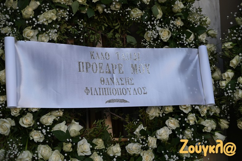 Τα στεφάνια στη μνήμη του εκλιπόντος κατέκλυσαν το προαύλιο του ναού.