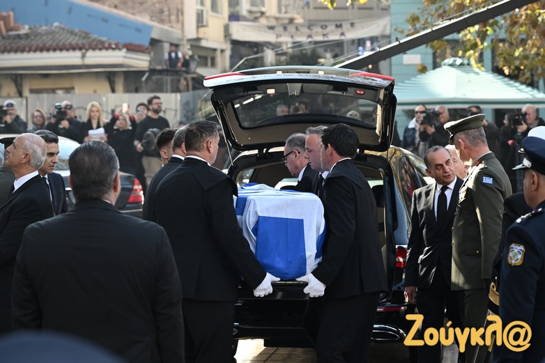 Λίγο μετά τις 11.00 έφτασε στη Μητρόπολη Αθηνών η σορός του πρώην πρωθυπουργού.